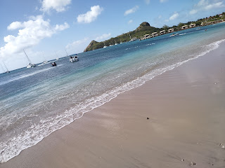 A catamaran voyage to the mud baths, a waterfall bath, a boat lunch of St. Lucian food, snorkeling (no photos of that, but I was the only one permitted to head to the ocean with goggles and no vest--the skipper saw it in my eyes and knew I needed to see the ocean on my own terms), and a particularly beautiful boat trip along heartbreakingly beautiful shores. When we reached shore, the driver dropped me off at a local eatery where I ate conch with rice, fried plantains and an incredibly delicate pumpkin served by a very hospitable Camil.