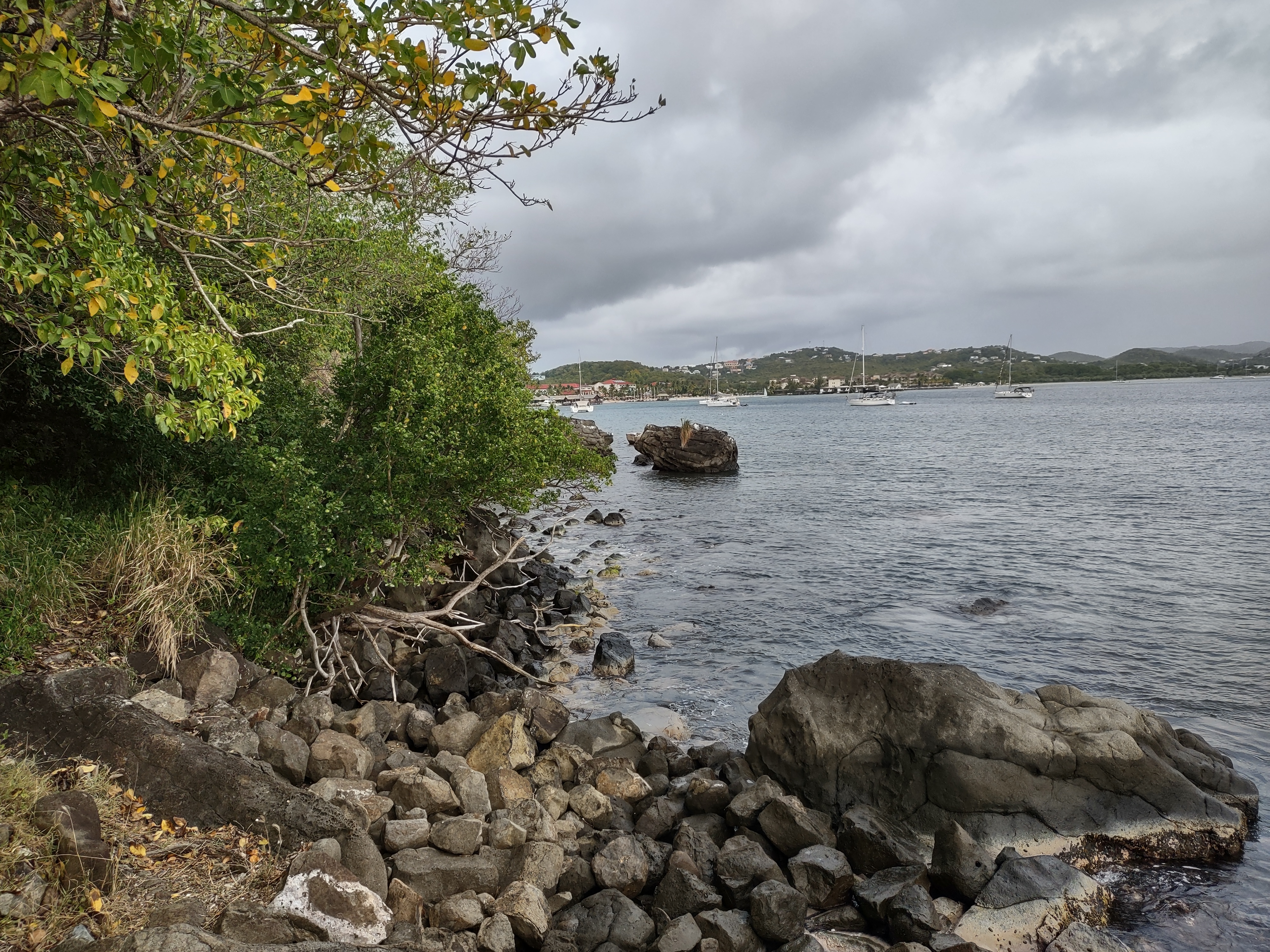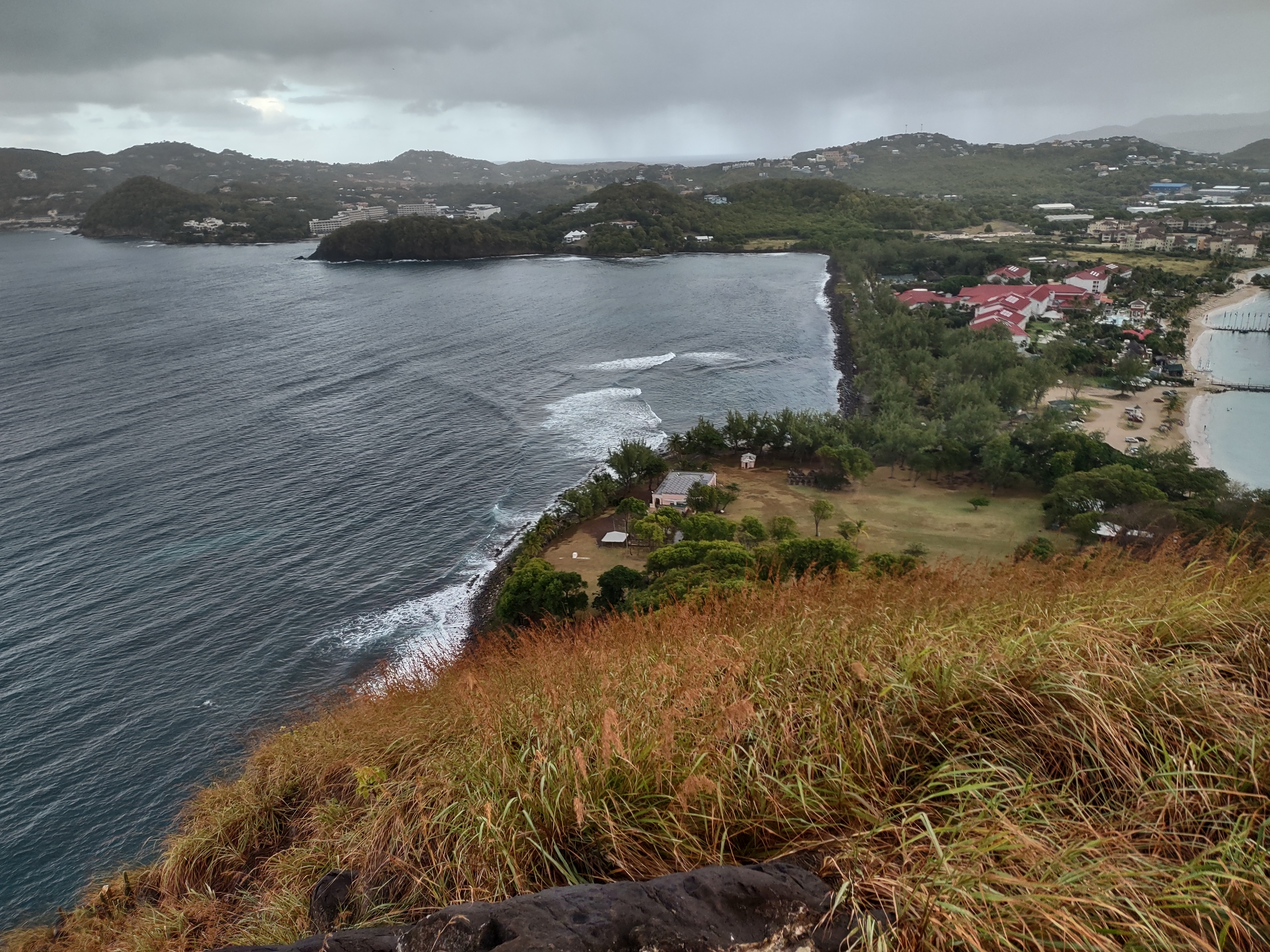 There is no rainy day blues in St. Lucia. In fact, rain and overcast skies make for perfectly subdued weather, providing ideal hiking and sightseeing conditions. Accordingly, do not pity the "poor weather" in these photos. I am just about to head to a very brutal climb this morning in gorgeous, sunny skies, and I am going to tear through what I expect to be a half gallon of water, if not more. And the rocky climbs, how are they in the rain? In the Appalachians, yes, wet moss is terrifyingly slick. But there is no moss on the rocks in St. Lucia, so the purchase afforded by the wet, rocky slopes is still ideal for climbing.